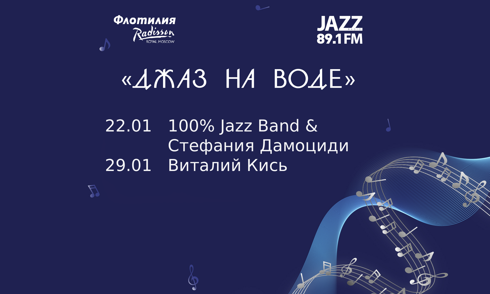 Flotilla Radisson Royal and JAZZ 89.1 FM Radio invite Muscovites and guests of the capital on a unique journey – "Jazz on the Water". Every Thursday we are waiting for you at the "Hotel Ukraina" pier to go together towards the warmest and most romantic memories.